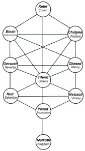 The Tree of Life is represented by ten circles. (Figure 1 – Tree of Life) These circles (sefirot) are drawn in three vertical lines, the center or trunk is represented by four sefirot and two vertical branches, one on either side of the trunk, representing three sefirot each. Study and reflection by kabbalist have revealed that each of the two opposing aspects work in opposition to each other with a third that lies in the middle on a moving equilibrium point between the two opposing sides. The sefirot triplets of the Tree of Life are shown below.